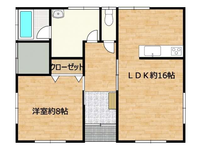 | 詳細間取 | 1LDK (1階:洋8帖×1、1階:LDK16帖) | ||