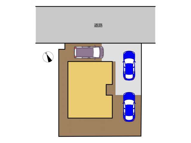 車通りの少ない閑静な住宅街の立地です。普通車3台駐車可能です。