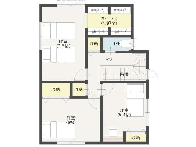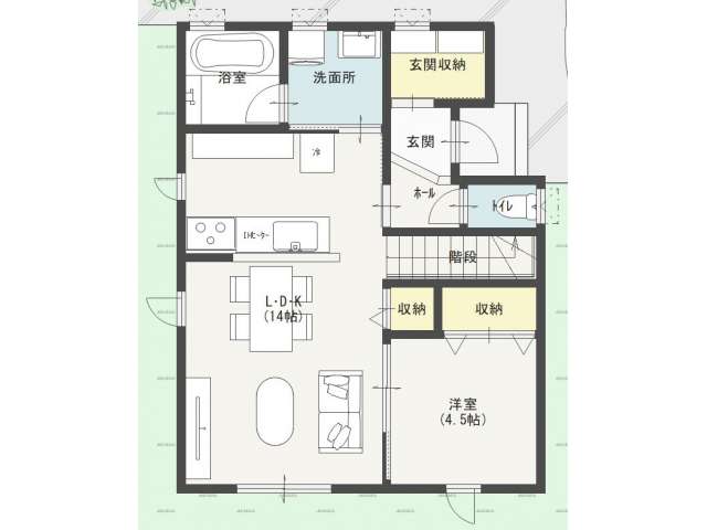 | 詳細間取 | 4LDK (1階:洋4.5帖×1、2階:洋5.4帖×1、2階:洋6帖×1、2階:洋7.5帖×1、1階:LDK14帖) | ||