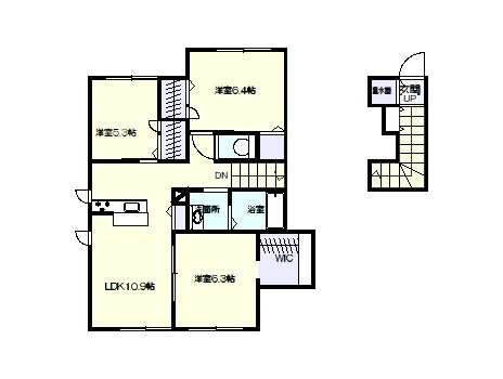 | 詳細間取 | 3LDK (洋5.3帖×1、洋6.3帖×1、洋6.4帖×1、LDK10.9帖) | ||