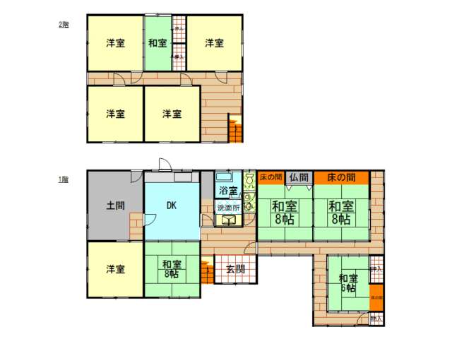 | 詳細間取 | 10DK (1階:帖×2、1階:帖×4、2階:帖×4) | ||