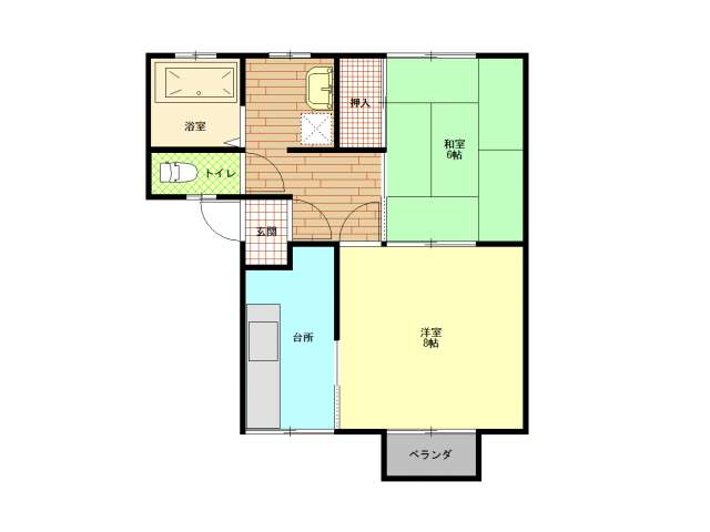 | 詳細間取 | 2K (洋8帖×1、和6帖×1) | ||