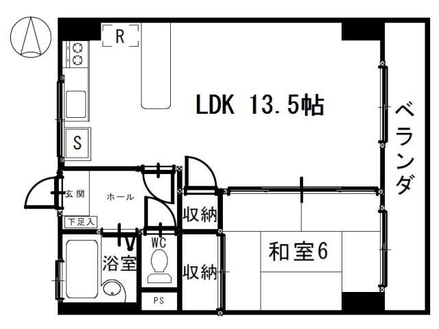 | 詳細間取 | 1LDK (和6帖×1、LDK13.5帖) | ||