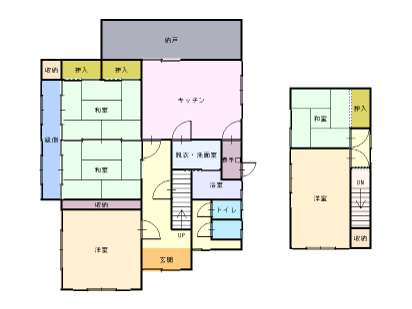 | 詳細間取 | 4LDK (1階:和6帖×2、2階:和4.5帖×1、2階:洋帖×1、1階:LDK10帖) | ||