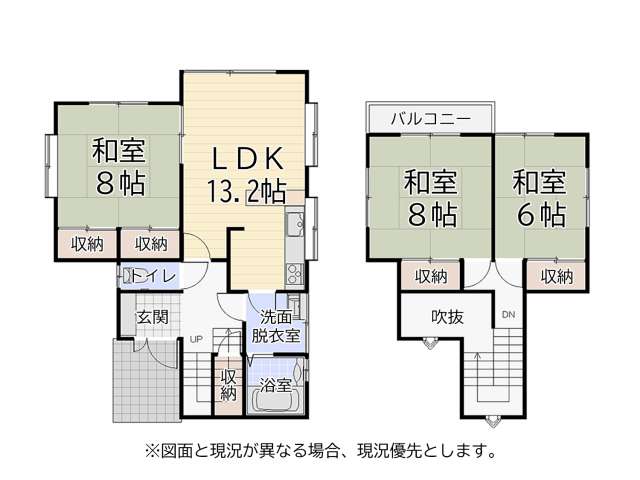 | 詳細間取 | 3LDK (1階:和8帖×1、2階:和8帖×1、2階:和6帖×1) | ||