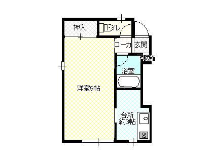 | 詳細間取 | 1K (洋9帖×1、キッチン3帖) | ||