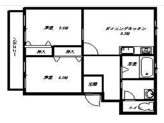 | 詳細間取 | 2DK (洋5.6帖×1、洋6帖×1、DK8.3帖) | ||
