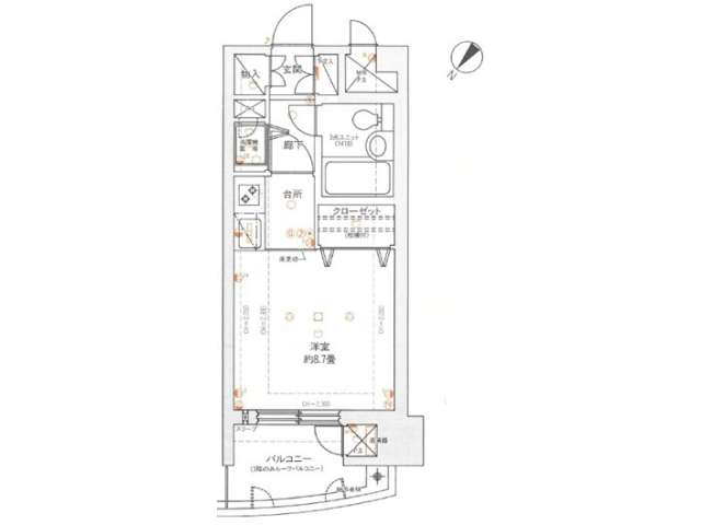 | 詳細間取 | 1R (洋8.7帖×1) | ||