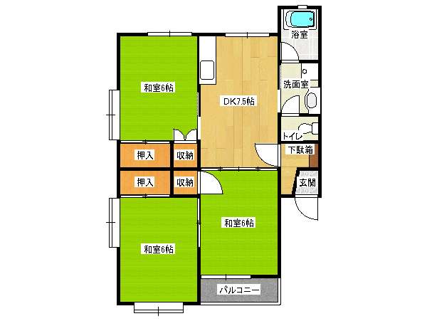 | 詳細間取 | 3DK (和6帖×3、DK7.5帖) | ||