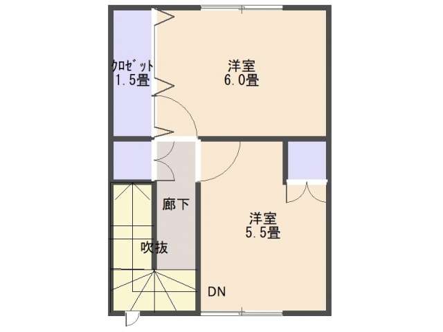 | 詳細間取 | 2LDK (洋6帖×1、洋5.5帖×1、LDK9.7帖) | ||