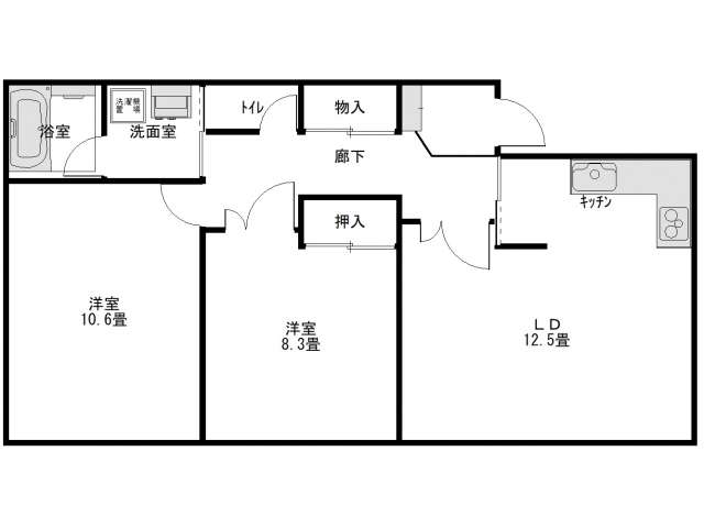 | 詳細間取 | 2LDK (洋10.6帖×1、洋8.3帖×1、LDK10.7帖) | ||