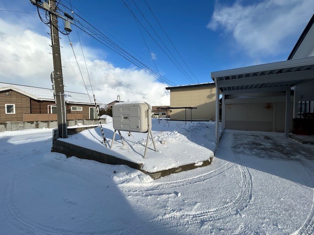 | 設備 | バス(有 シャワー有 給湯式) トイレ(洋式 独立 水洗 暖房便座 洗浄機能付) 上水道設備(公営) 下水道設備 給湯(石油)3箇所 洗面化粧台(独立)(シャワー付) 都市ガス (3口) インターホン エアコン FFストーブ 専用庭 下駄箱 洗濯機置場 システムキッチン 物置 網戸 カーテンレール 照明器具 TVアンテナ カーポート 車庫 | ||