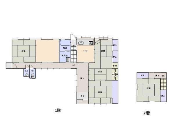 | 詳細間取 | 5DK (1階:和8帖×2、1階:和12帖×1、1階:洋8帖×1、2階:和8帖×1、1階:DK6帖) | ||