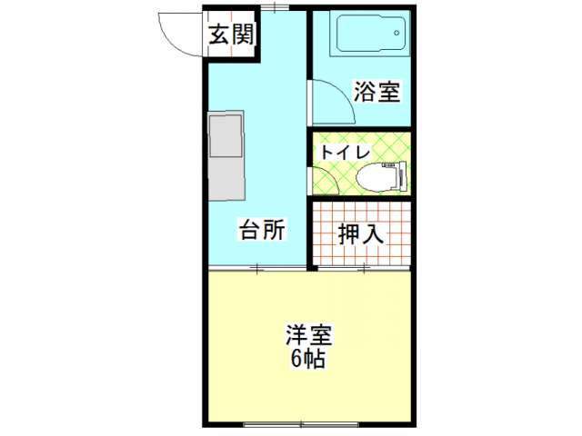 | 詳細間取 | 1K (洋6帖×1、キッチン4帖) | ||