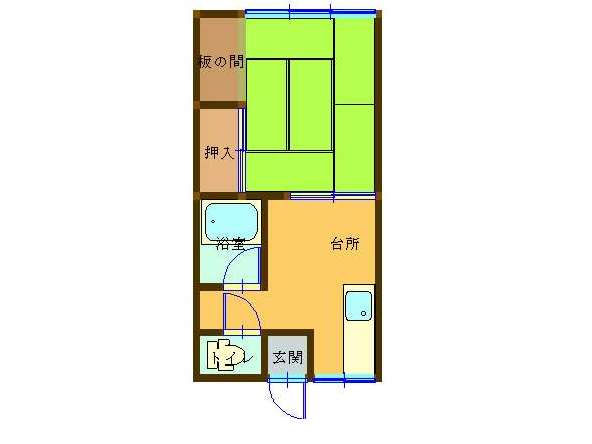 | 詳細間取 | 1K (和6帖×1、キッチン4.5帖) | ||
