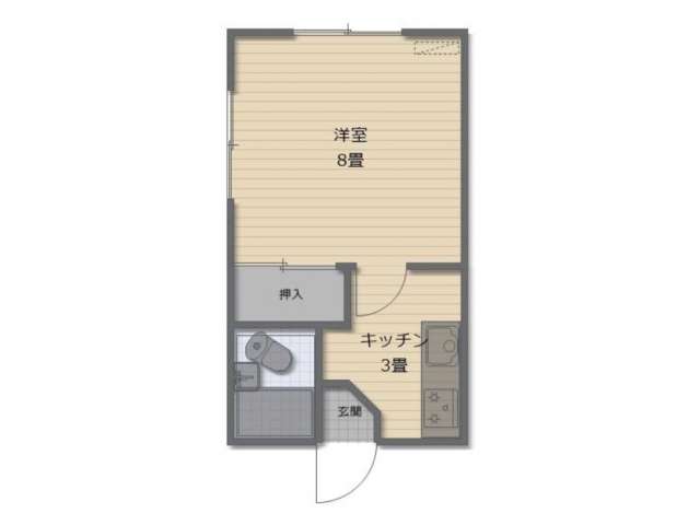| 詳細間取 | 1K (洋8帖×1、キッチン3帖) | ||