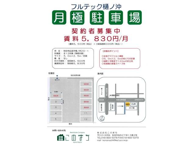 | 備考 | 5.0m×2.5mのゆとりの区画です 冬期間の排雪スペース有ります 普通賃貸借 | ||