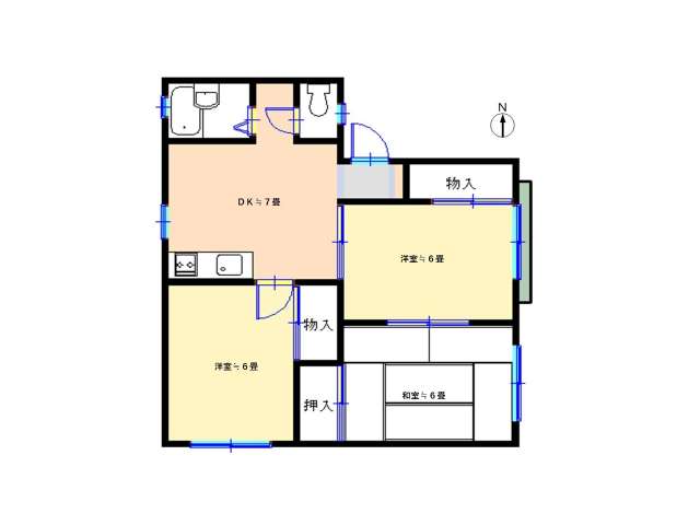 | 詳細間取 | 3DK (和6帖×1、洋6帖×1、洋6帖×1、DK7帖) | ||