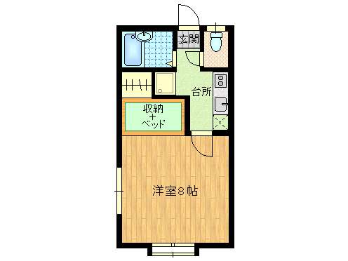 | 詳細間取 | 1K (洋8帖×1) | ||