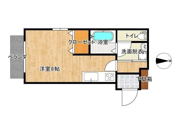 | 詳細間取 | 1K (洋8帖×1) | ||
