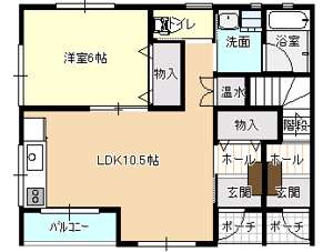 | 詳細間取 | 1LDK (洋6帖×1、LDK10.5帖) | ||