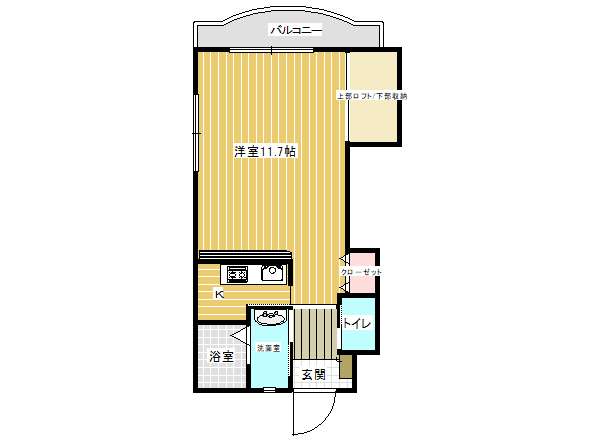 | 詳細間取 | 1K (洋11.7帖×1、ロフト1.7帖) | ||