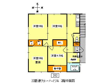 | 詳細間取 | 4K (和6帖×1、洋6帖×2、洋4.5帖×1) | ||