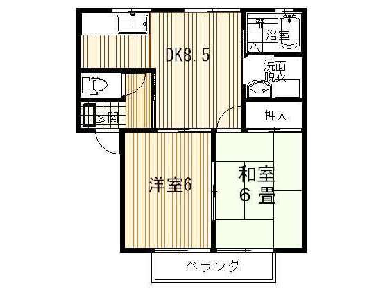 | 詳細間取 | 2DK (和6帖×1、洋6帖×1、DK8.5帖) | ||