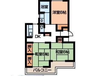 | 詳細間取 | 3K (和6帖×2、洋6帖×1) | ||