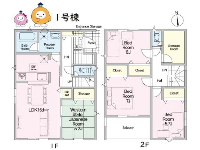 | 詳細間取 | 4LDK (1階:和5.2帖×1、2階:洋5.7帖×1、2階:洋6帖×1、2階:洋7帖×1、1階:LDK15帖) | ||