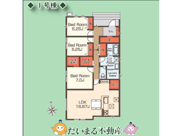 | 詳細間取 | 3LDK (1階:洋5.2帖×2、1階:洋7帖×1、1階:LDK18.8帖) | ||
