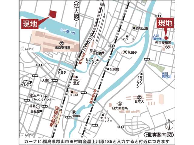 JR東北本線 安積永盛駅徒歩34分 バス 上川原徒歩4分 |